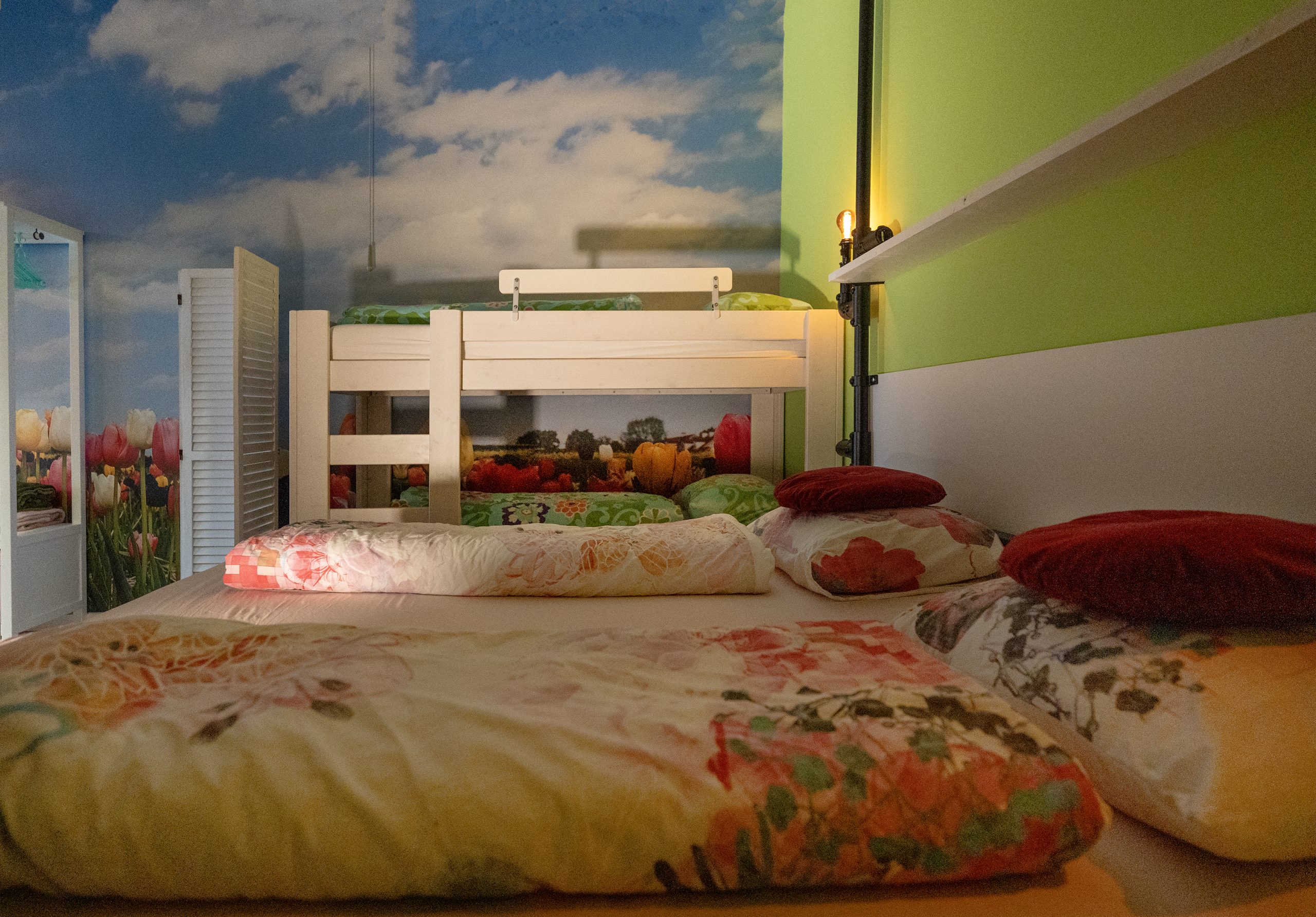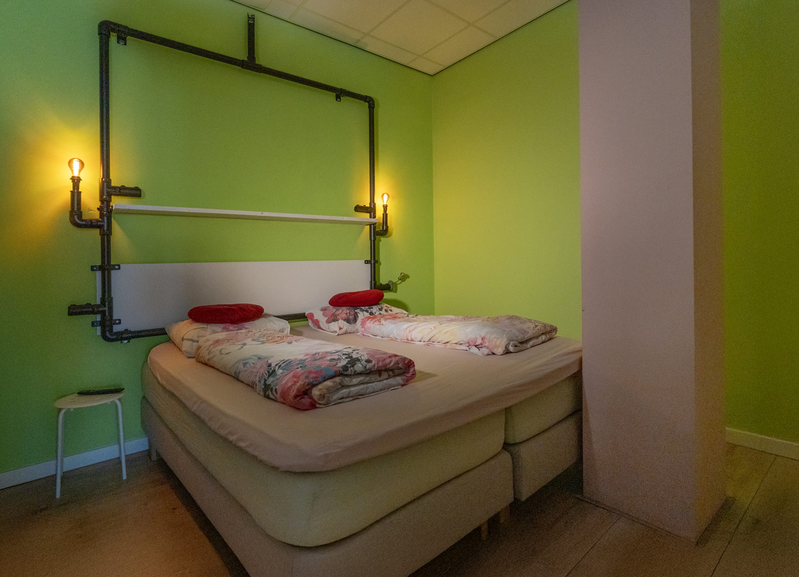 De ruime privé badkamer is uitgerust met een luxe stortdouche, wastafel, toilet met handdoeken en haardroger tot uw beschikking. De studio heeft één kingsize bed (180x200cm) (van Slaapkenner Zuidervaart). En er staat een stapelbed voor de kinderen (tot 85 kg). Bovendien heeft de slaapkamer een 60Inch smart-tv.