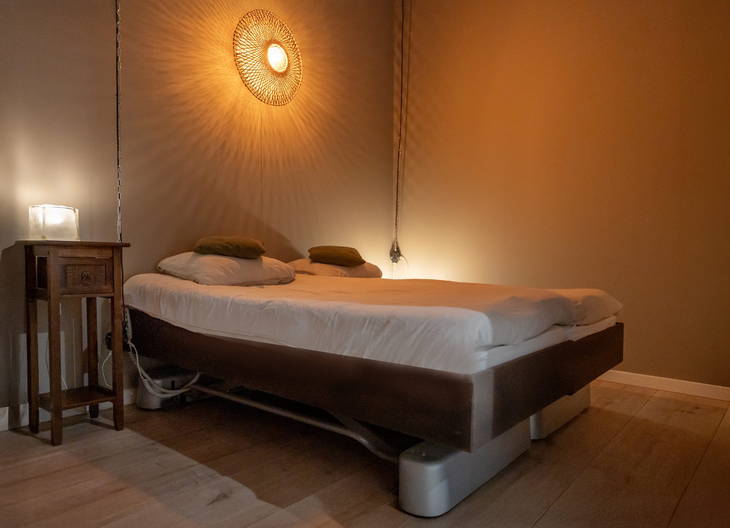 De studio is zo ingedeeld dat het slaapgedeelte afgeschermd is van het leefgedeelte. Zo kunt u met alle privacy tot rust komen. In deze studio is een dubbel hoog/laag bed met afneembare papagaai. Ook de slaapruimte heeft een eigen smart-tv (60inch).
